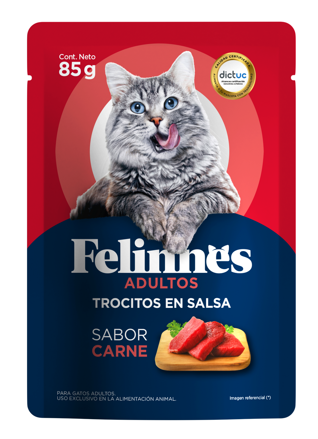 Alimento húmedo completo y balanceado sabor carne para gato adulto elaborado con proteínas de origen animal y vegetal de alta digestibilidad, contiene vitaminas y minerales en concentraciones necesarios para un desarrollo fisiológico óptimo.