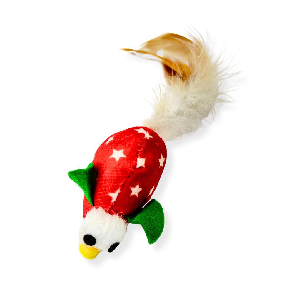 Este adorable ratoncito con estampado de estrellas y cola de plumas está diseñado para estimular el instinto cazador de tu felino. Su tamaño, textura y movimiento lo hacen irresistible para saltar, atrapar y morder.