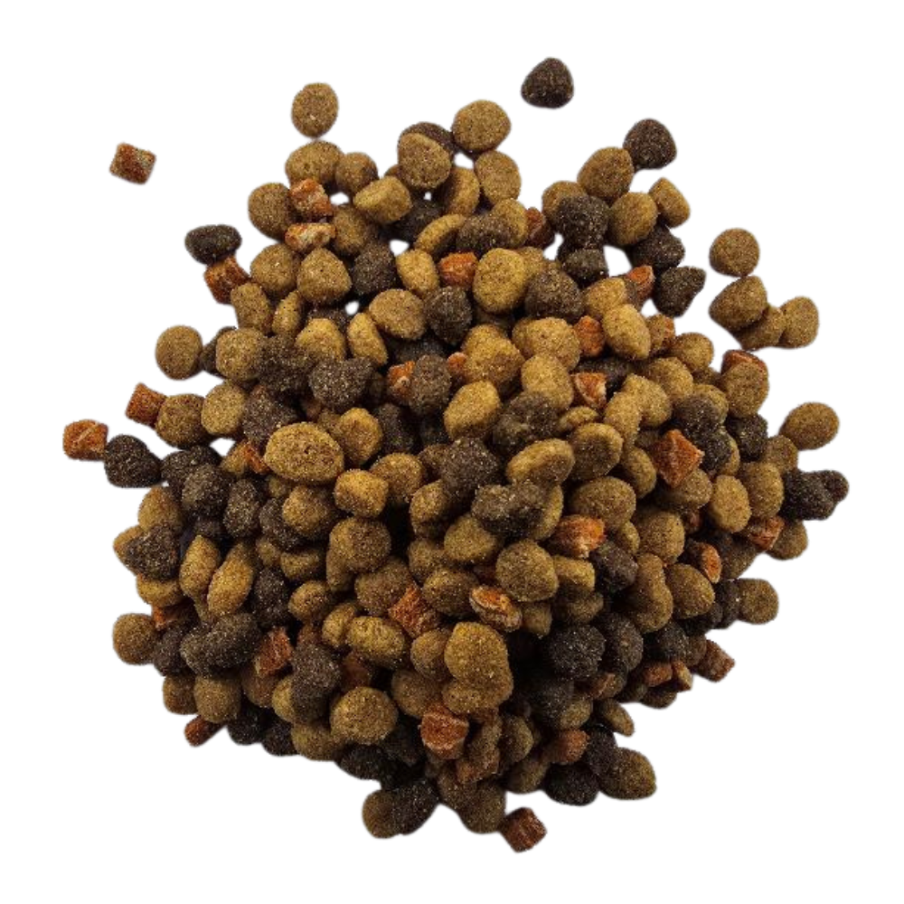 Maíz y/o arroz, Harina de subproductos de aves de corral, Harinilla de trigo, Harina de soya, Proteína de maíz, Grasa de aves de corral y/o vegetal, Harina de carne y hueso bovino, Proteína hidrolizada de ave y/o cerdo, Harina de Salmón, Vitaminas y minerales, Levadura, Salvado de arroz, Sal, Bisulfato de sodio, Antioxidante, Bentonita y/o zeolita, Postbióticos, Taurina, Aceite de pescado desodorizado (fuente de ácidos grasos omega-3), Colorantes, Metionina, Antifúngico, Triptófano.Eventuales sustitutos totales o parciales: Harina de pollo, Harina de carne y hueso de cerdo, Harina de pescado, Grasa de cerdo y/o bovino, Harina de mejillón, Hidrolizado de camarón y/o pescado, Salvado de trigo, Proteína hidrolizada de plumas, Proteína vegetal, Hemoproteína aviar, Huevo.